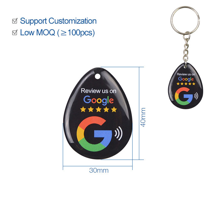 سلسلة مفاتيح مخصصة من راتنجات الإيبوكسي NFC وعلامة مراجعة Google من NFC لمشاركة وسائل التواصل الاجتماعي