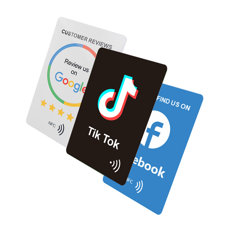 للبيع بالجملة بطاقة مراجعة Google RFID NFC بتصميم مخصص من بولي كلوريد الفينيل RFID بطاقة عمل RFID لـ Facebook Whatsapp Instagram